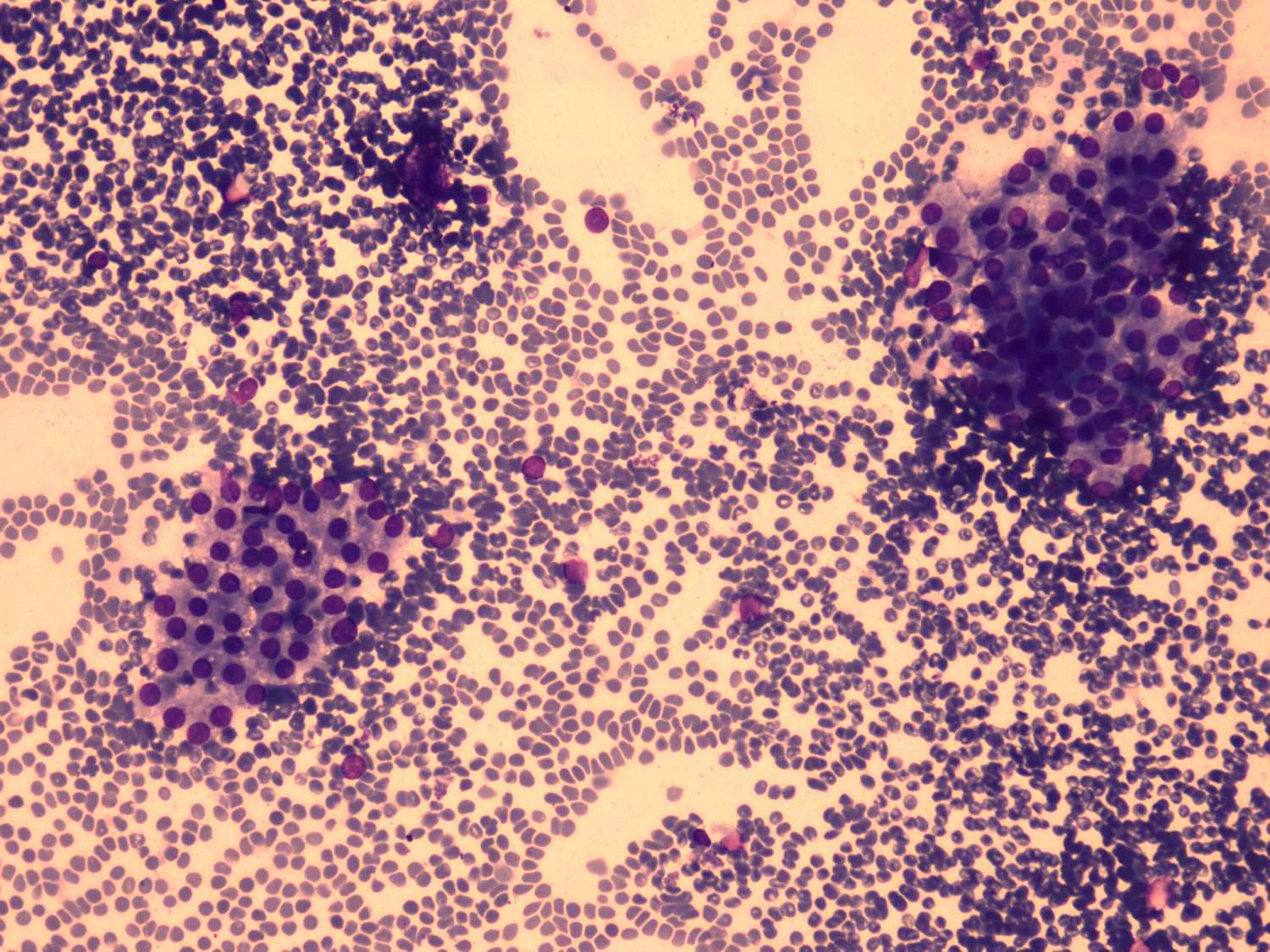 Wright-Giemsa staining, 200x. Note vacuolization.