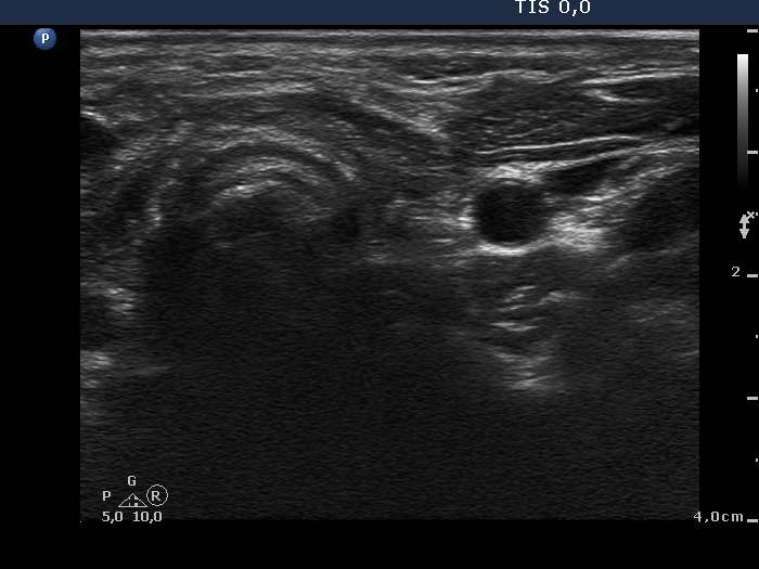 Taking the ultrasound presentation into account we gave a common ultrasound-cytological diagnosis of suspicion of papillary carcinoma and Hashimoto's thyroiditis.