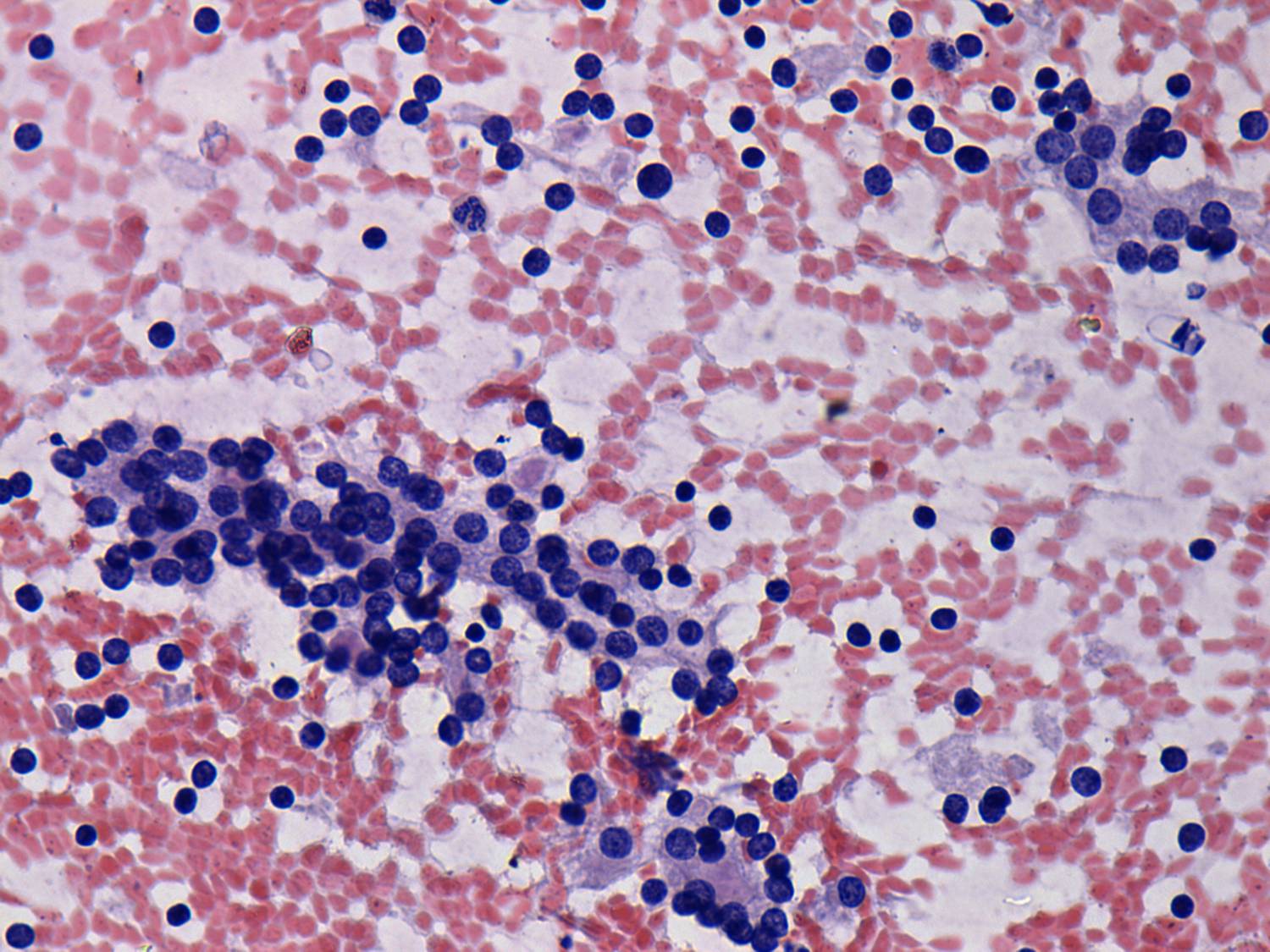 Pap-smear, 400x. The small number of lymphocytes may arise even from the blood.