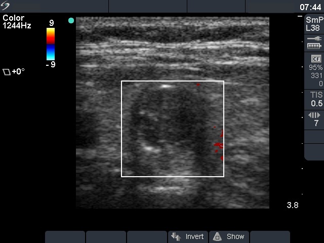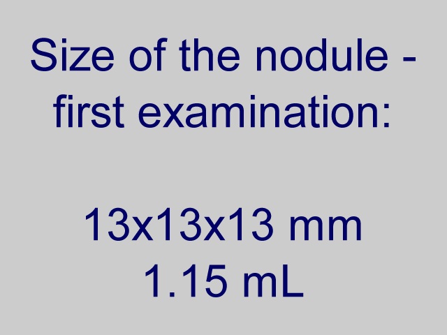 Summary of follow-up: the patient underwent yearly ultrasound examination. The nodule was unchanged, she had no complaints.