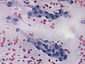 Cytological diagnosis: Hashimoto's thyroiditis. Suspicion of Hürthle-cell tumor.