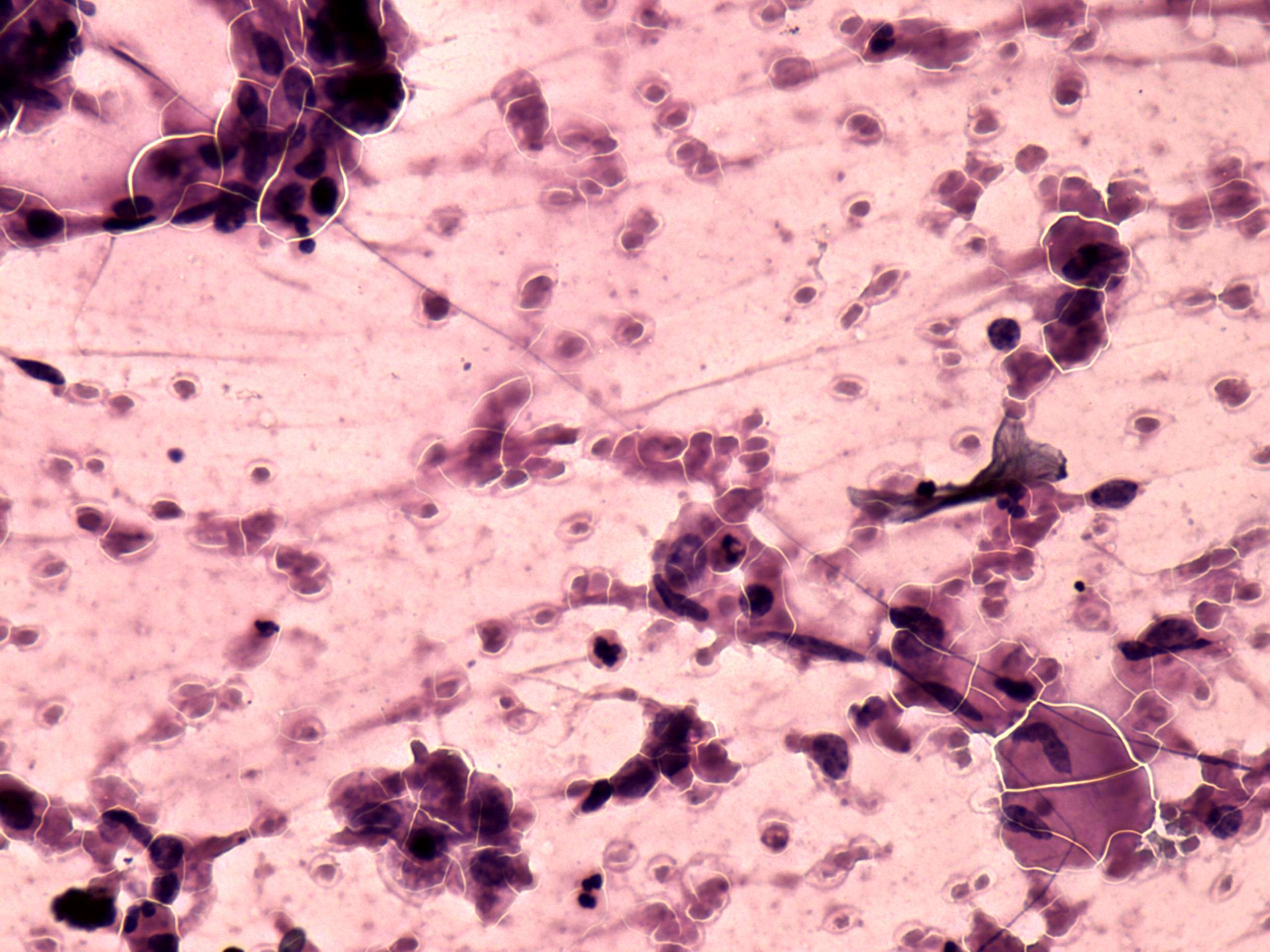 Pap-smear, 400x. Histiocytes and multinucleated cells.