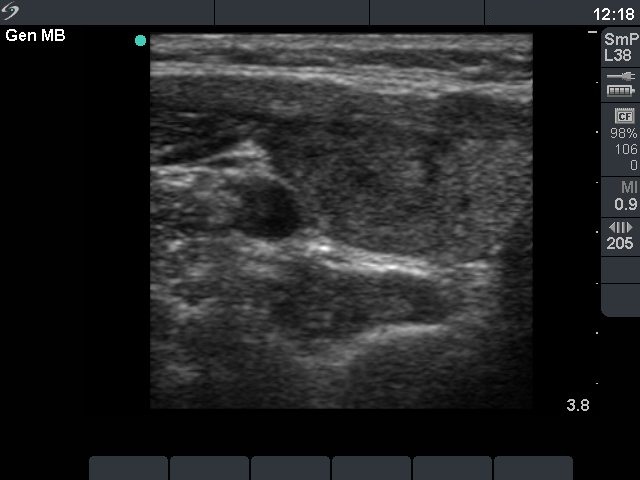 Palpation: a nodule was palpable in the right lobe.