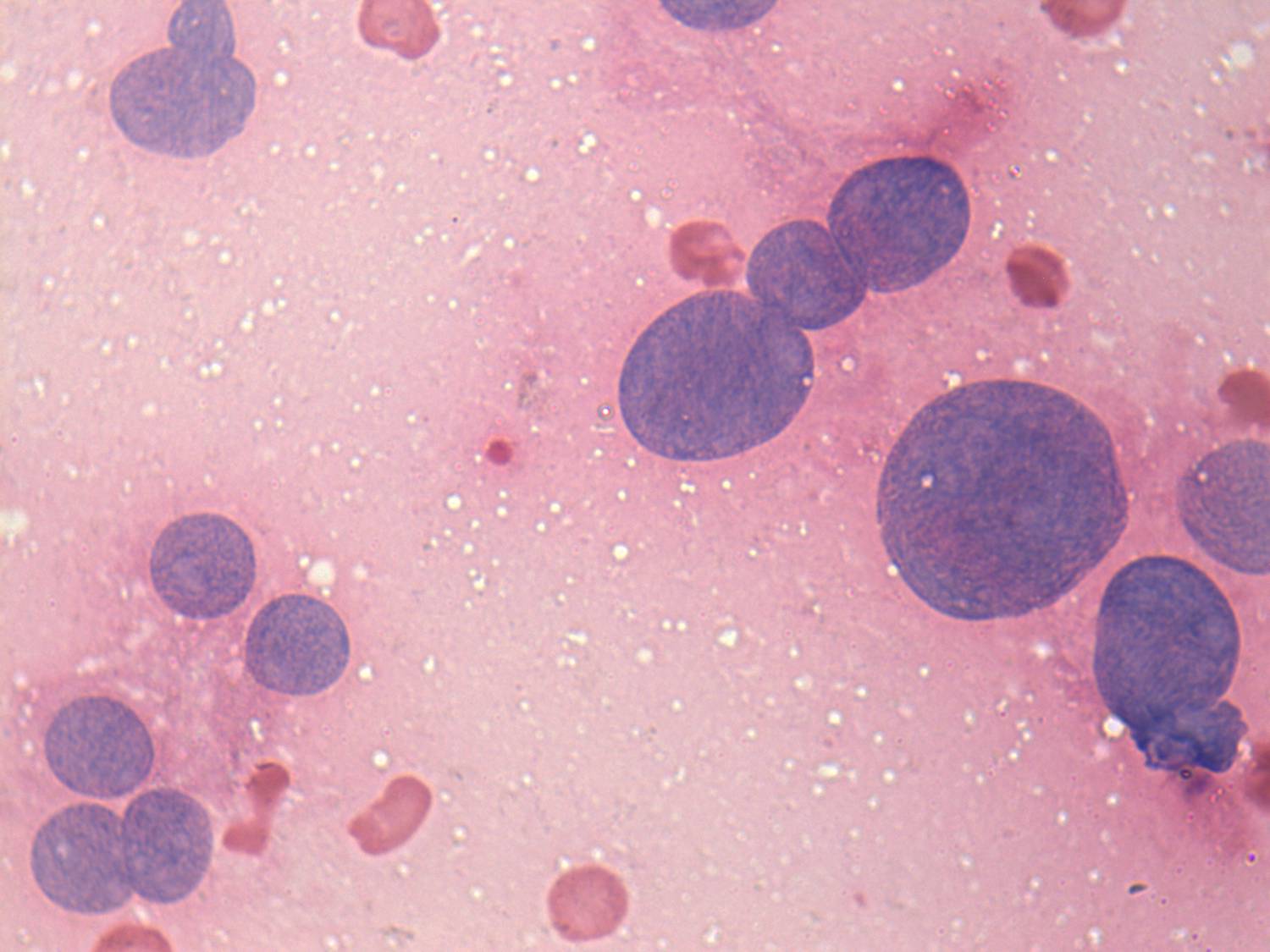Pap-smear, 1000x. Follicular cell do not exhibit atypia except for anisonucleosis.
