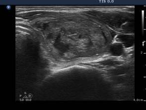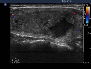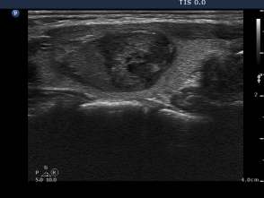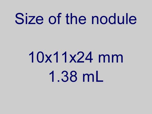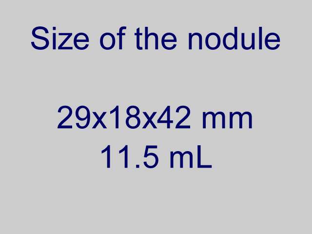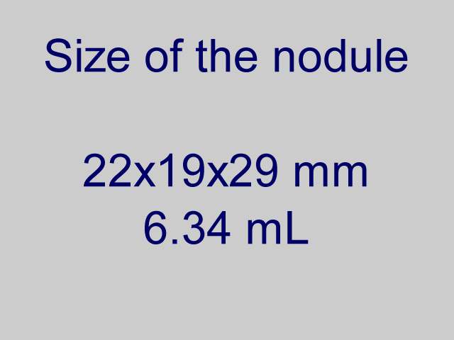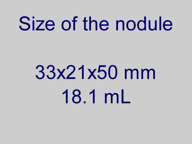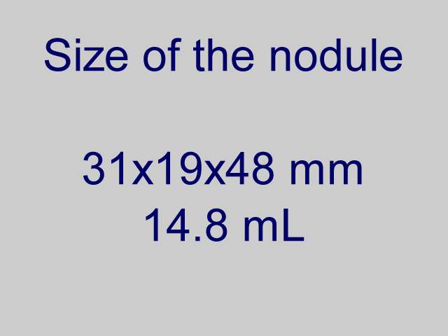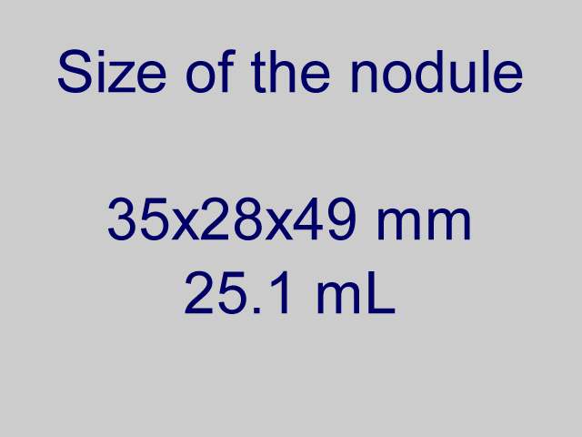 Palpation: a firm nodule in the left lobe. The lesion was painless.