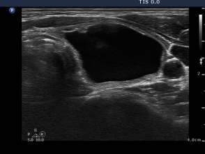 Ethanol sclerotherapy: other examples - Case 3: treatment of a gelatinous thyroid cyst |