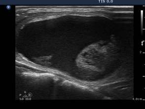Ultrasonography: a further significant decrease was detected. The nodule became more inhomogeneous.