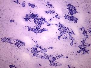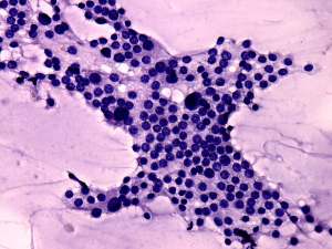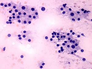Cytology: was performed from the hypoechogenic lesion in the dorsal part of the right lobe.