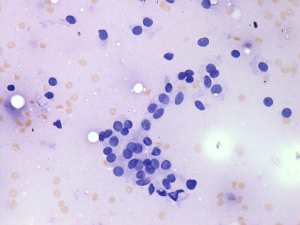 Cytology: disclosed a benign nodular goiter with a microfollicular pattern.