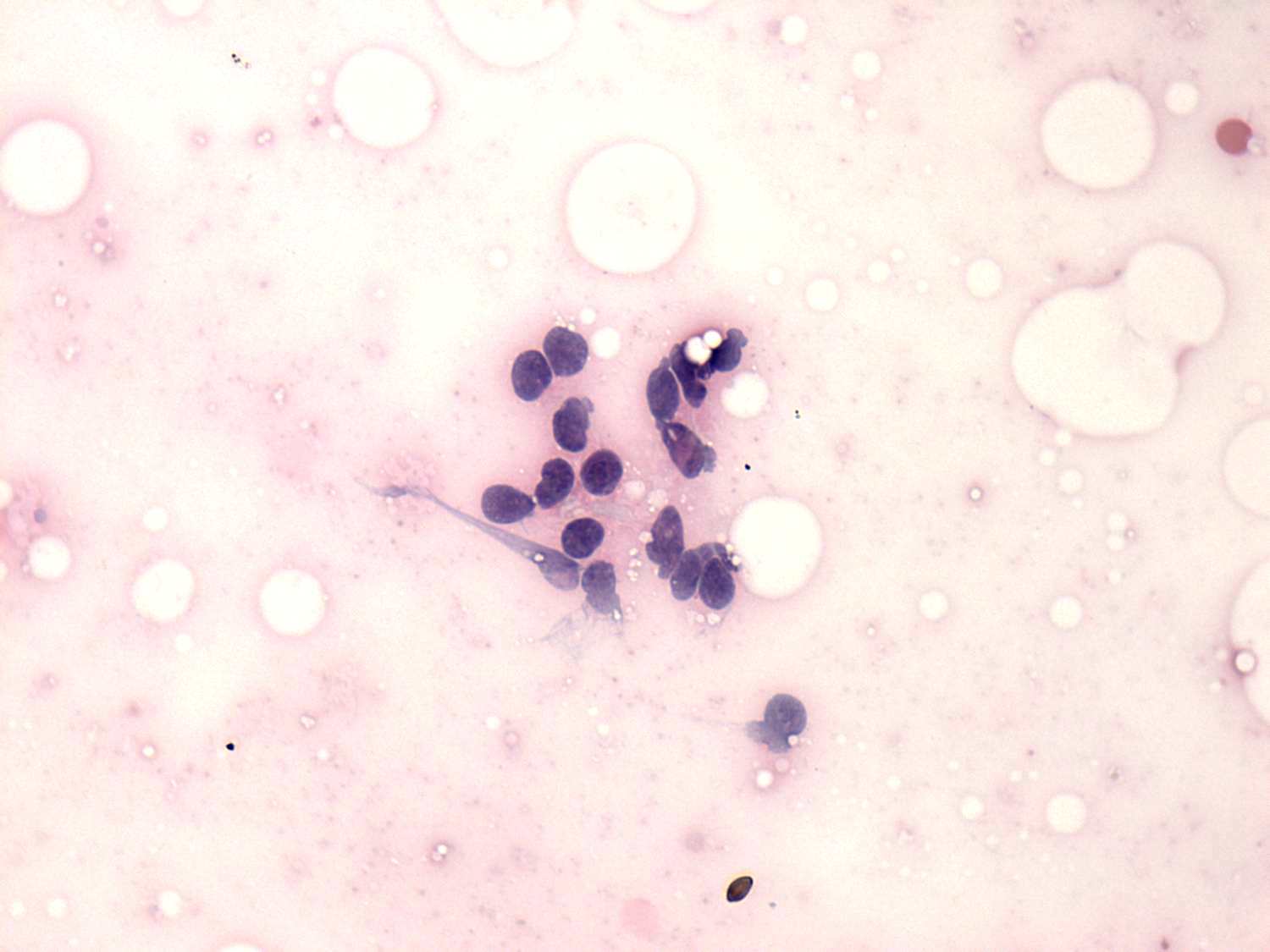 Pap-smear, 400x. Cluster of degenerated thyrocytes.