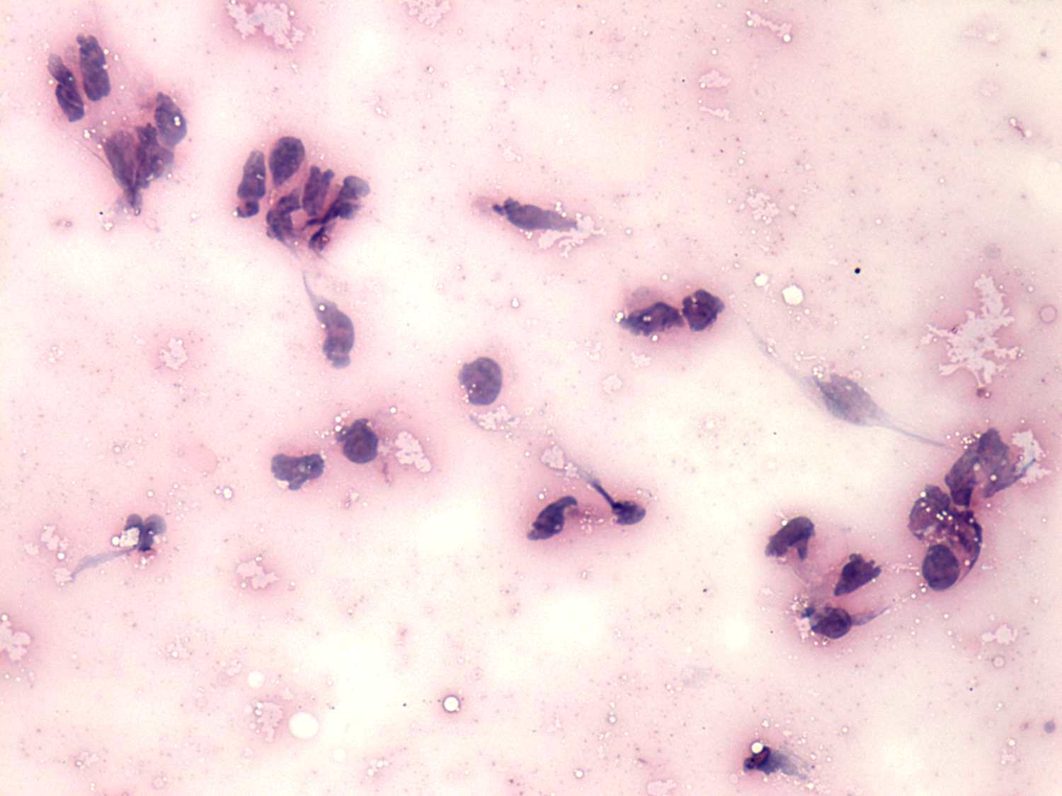 Pap-smear, 400x. Degenerated follicular cells