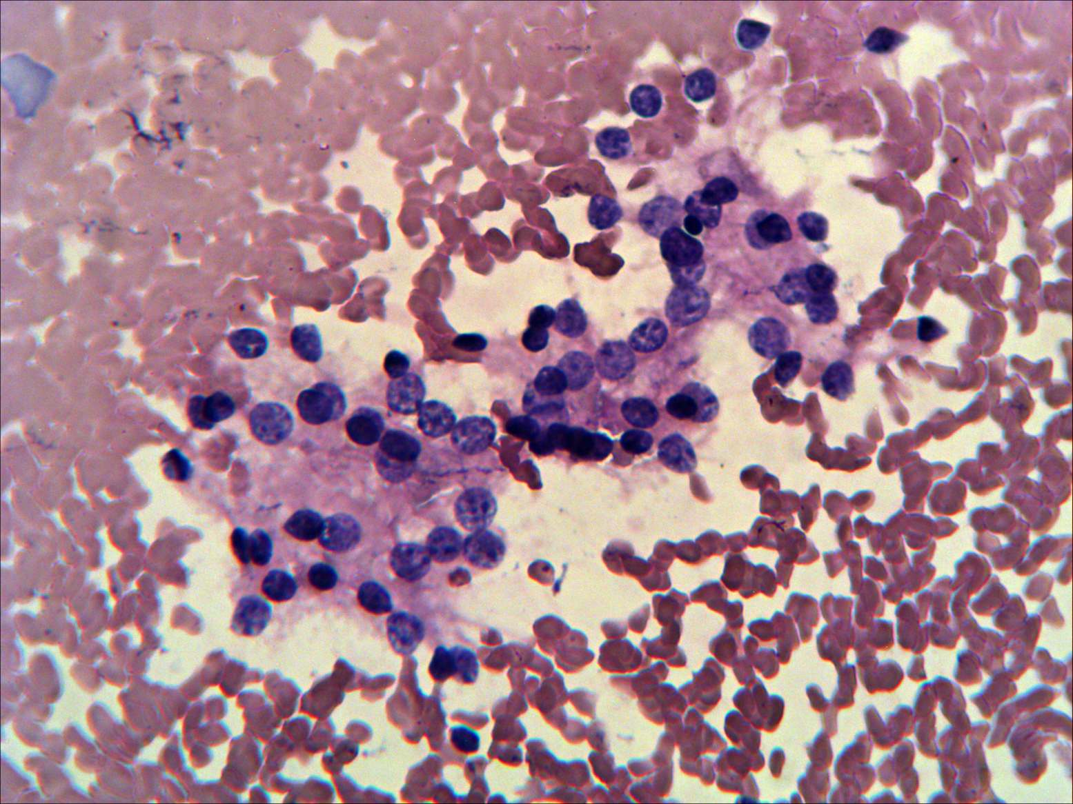 Pap-smear, 400x. Normofollicles are presented. Note the presence of prominent nucleoli