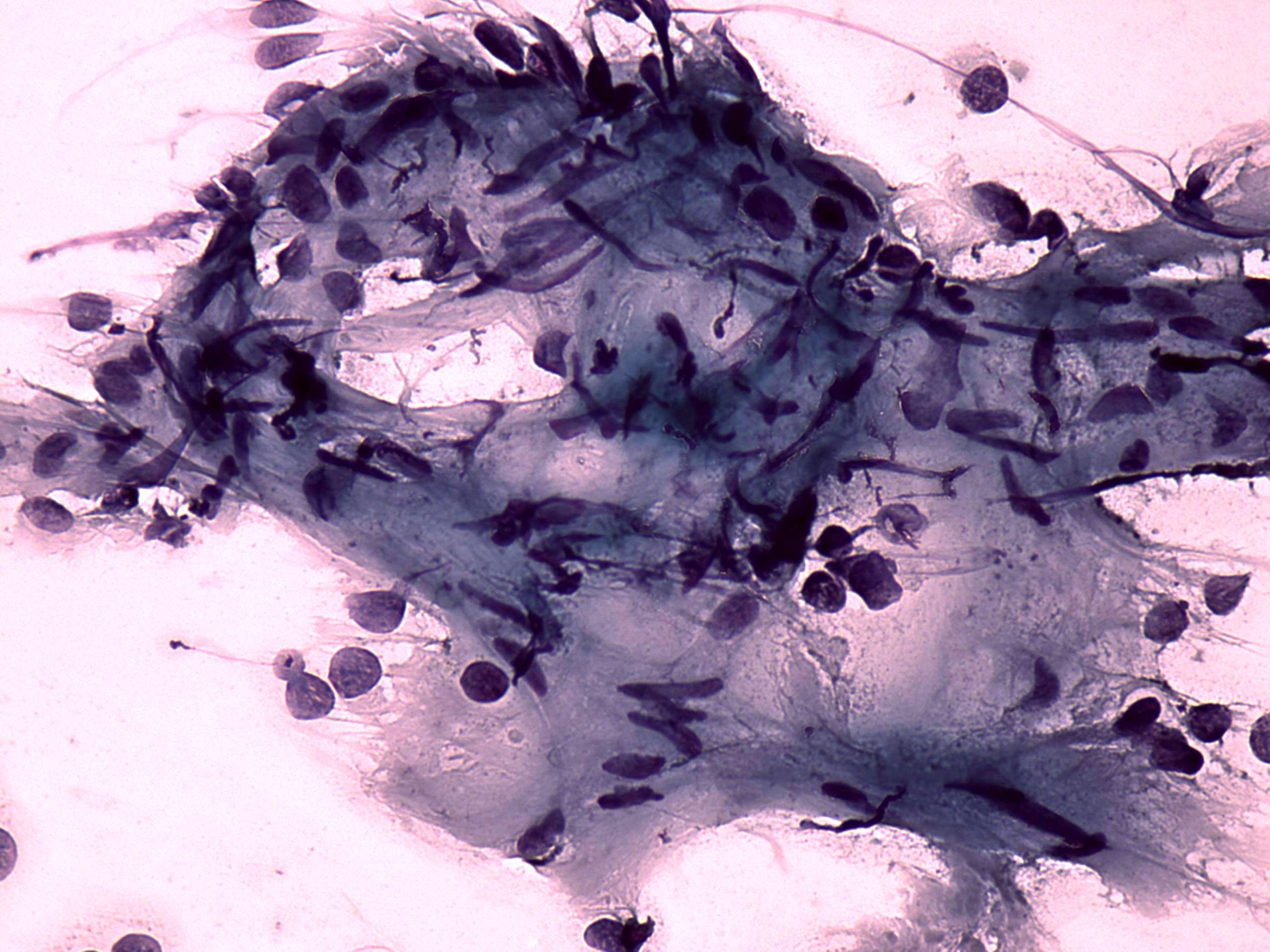 Pap-smear, 400x. Fibrovascular stroma is presented.