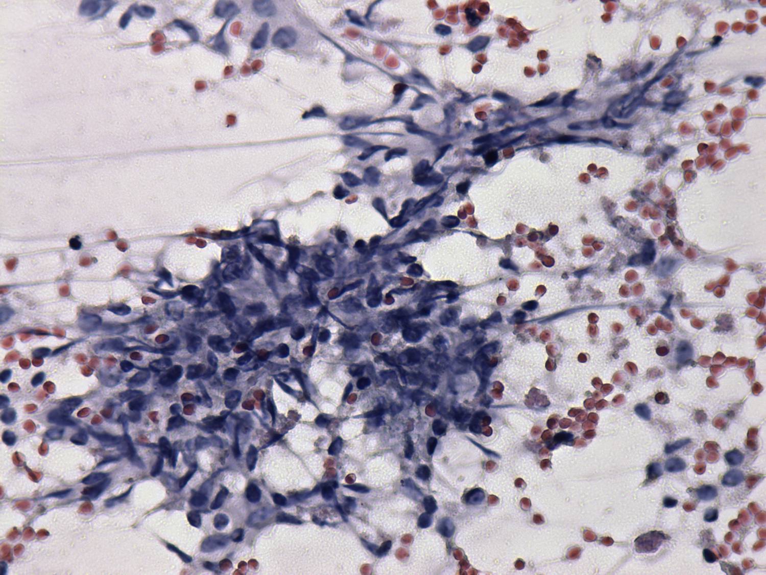 Pap-smear, 400x. Group of elongated epitheloid cells.