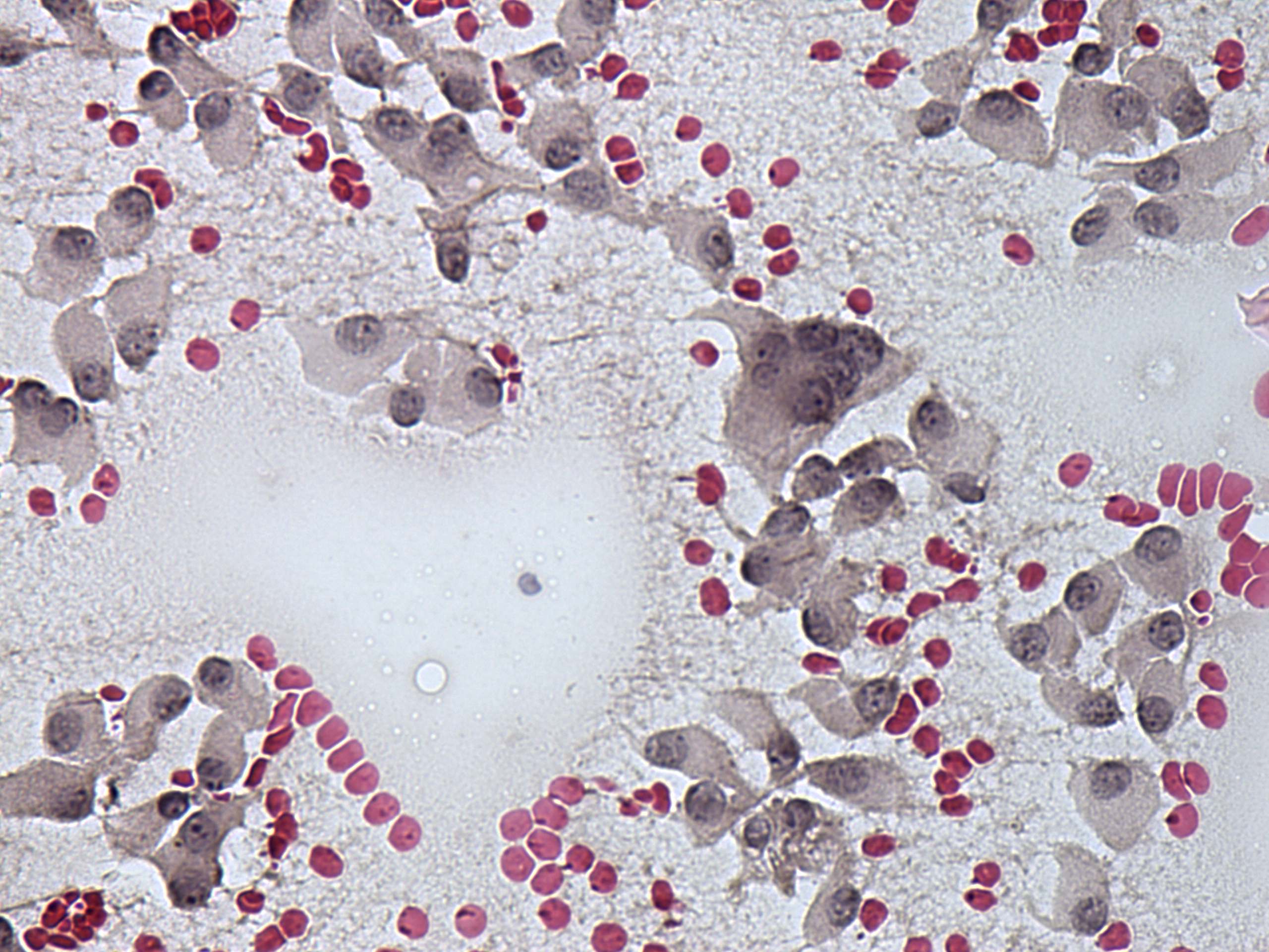 Pap-smear, 400x. The chromatin structure is coarsely granular.