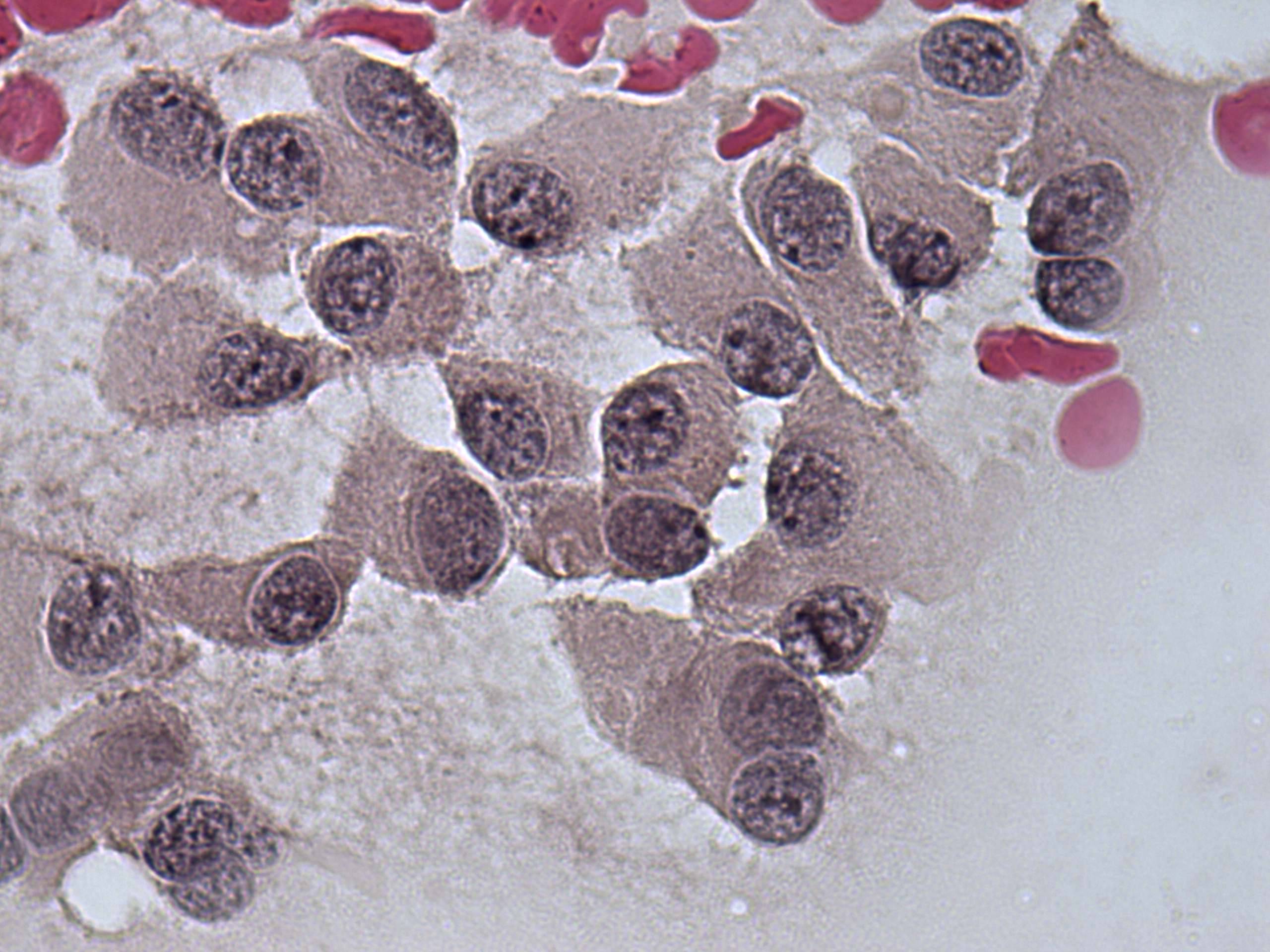 Pap-smear, 1000x. The chromatin structure is coarsely granular.