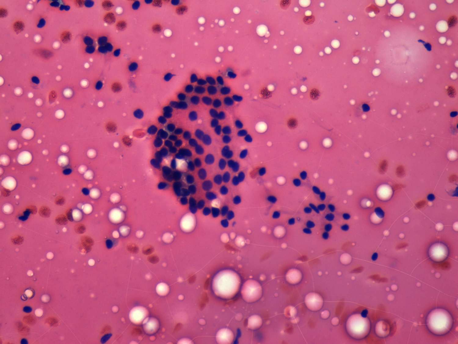 Pap-smear, 400x. Follicular cells are of even sizes.