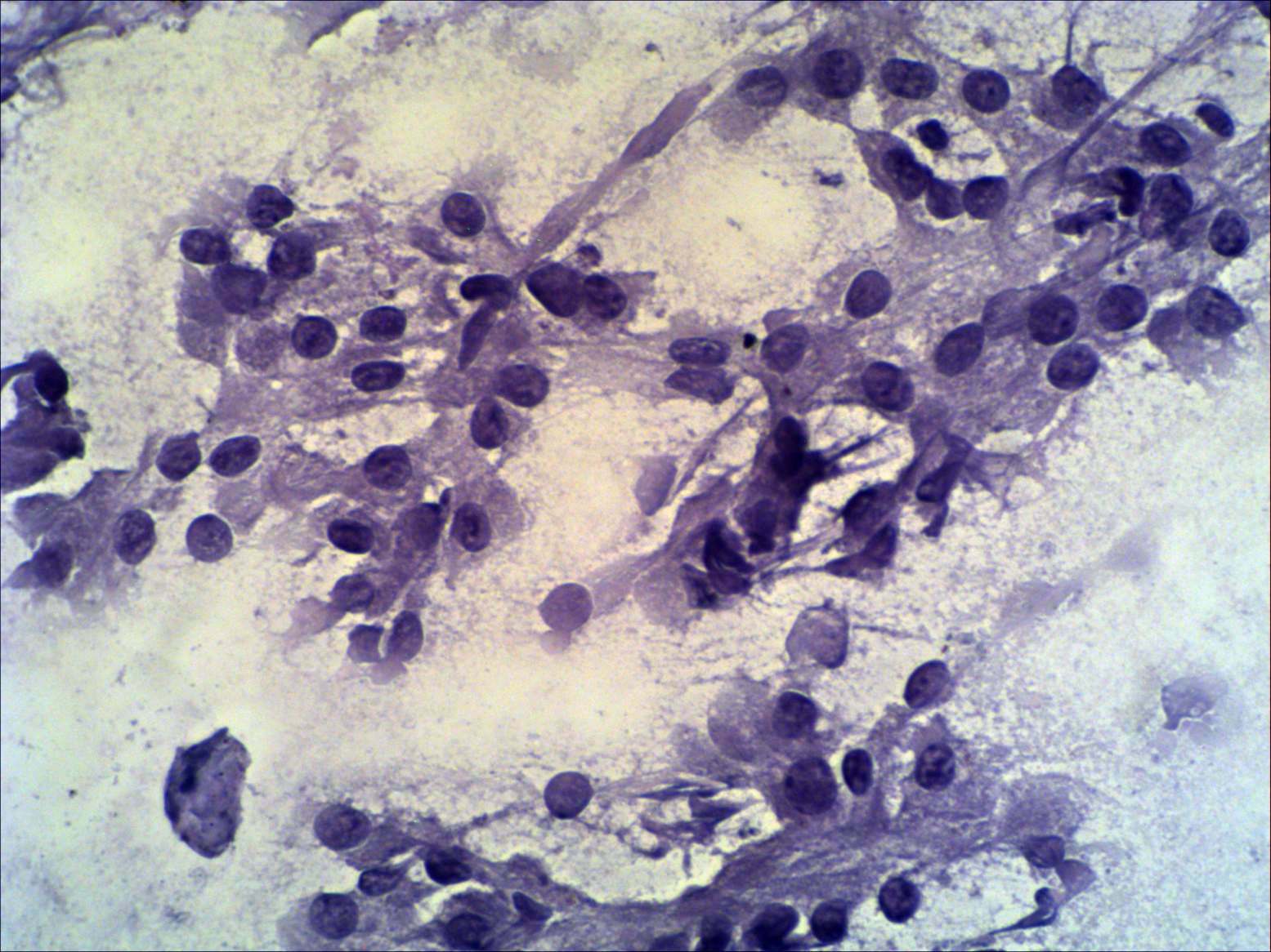 Pap-smear, 400x. Another cell group composed of oxyphilic cells without any significant atypia.