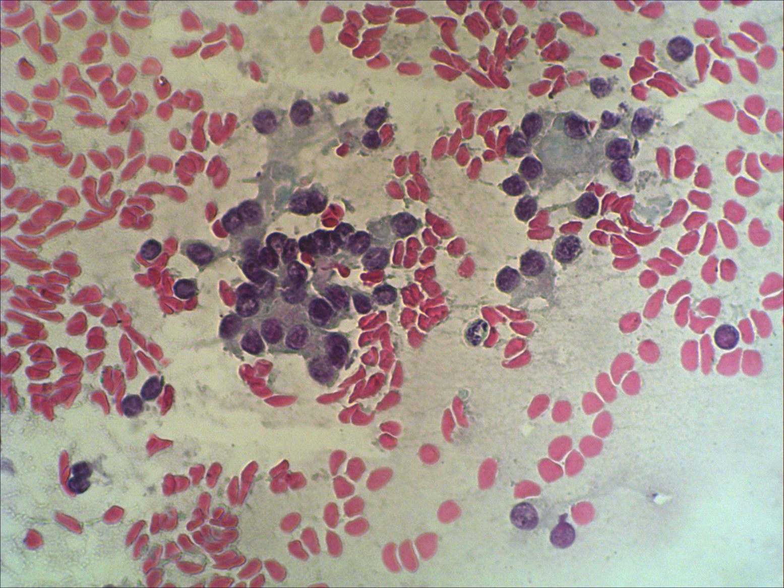 Pap-smear, 200x. Follicular cells exhibite degenerative changes.