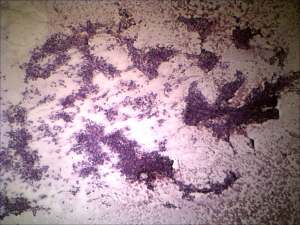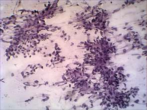 Clinical data: a 75-year-old woman was referred for an evaluation of a progressive thyroid enlargement. The patient was operated on benign nodular goiter 50 years earlier. She told that her thyroid was enlarged just after the operation but caused no complaints. She noticed a sudden increase in the last two months, which caused dyspnea and dysphagia.