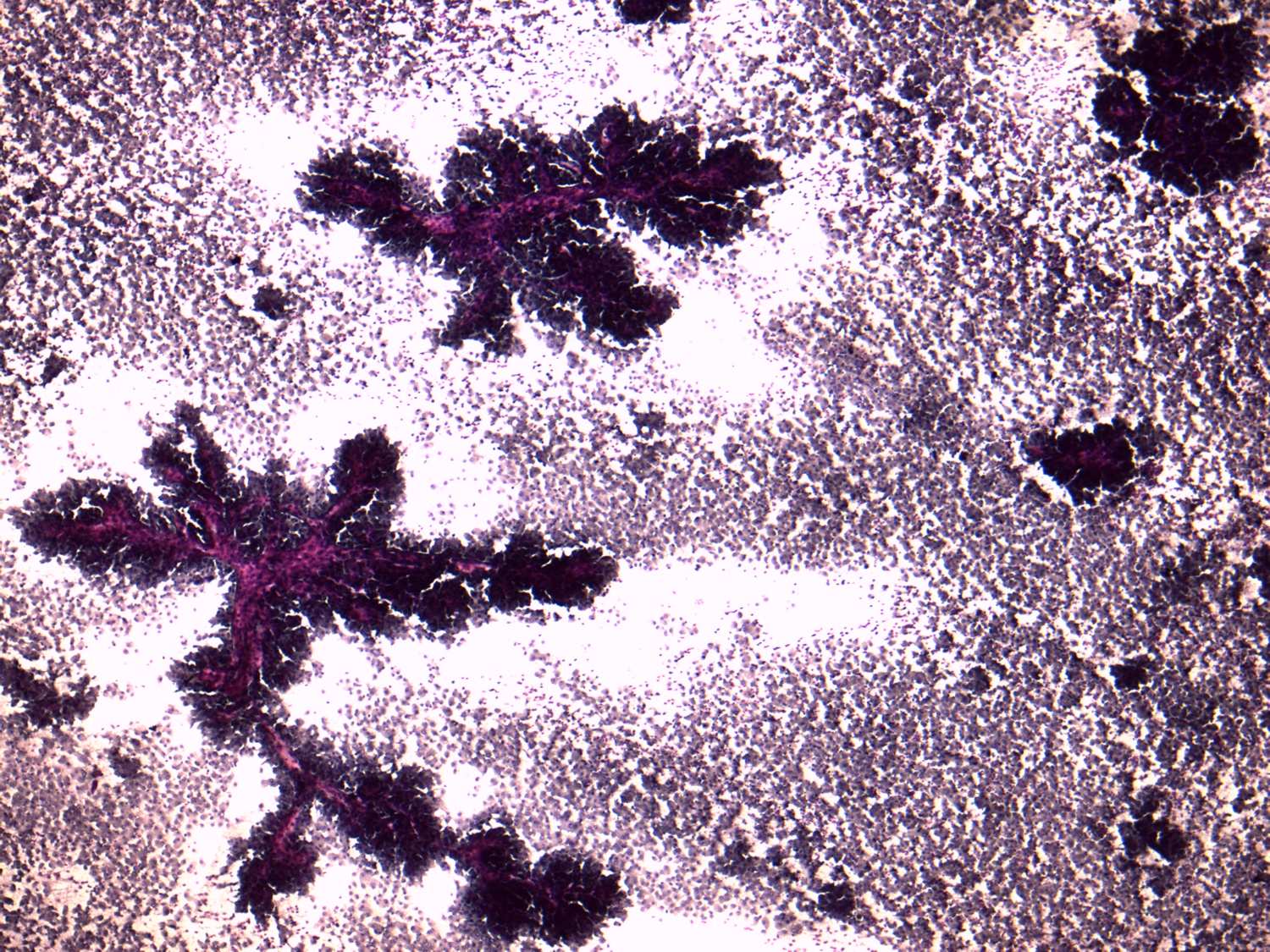 Pap-smear, 40x. Thyrocytes in arborizing papillary structures.