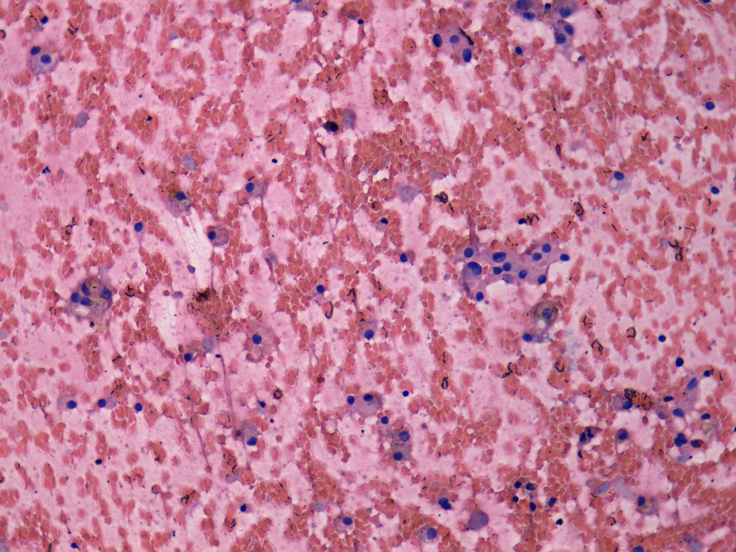 Pap-smear, 400x. Typical pattern of a microfollicular proliferation. Follicular cells are of even size.