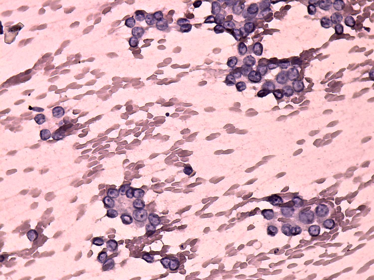 Pap-smear, 400x. Follicular cells with small prominent nucleoli.