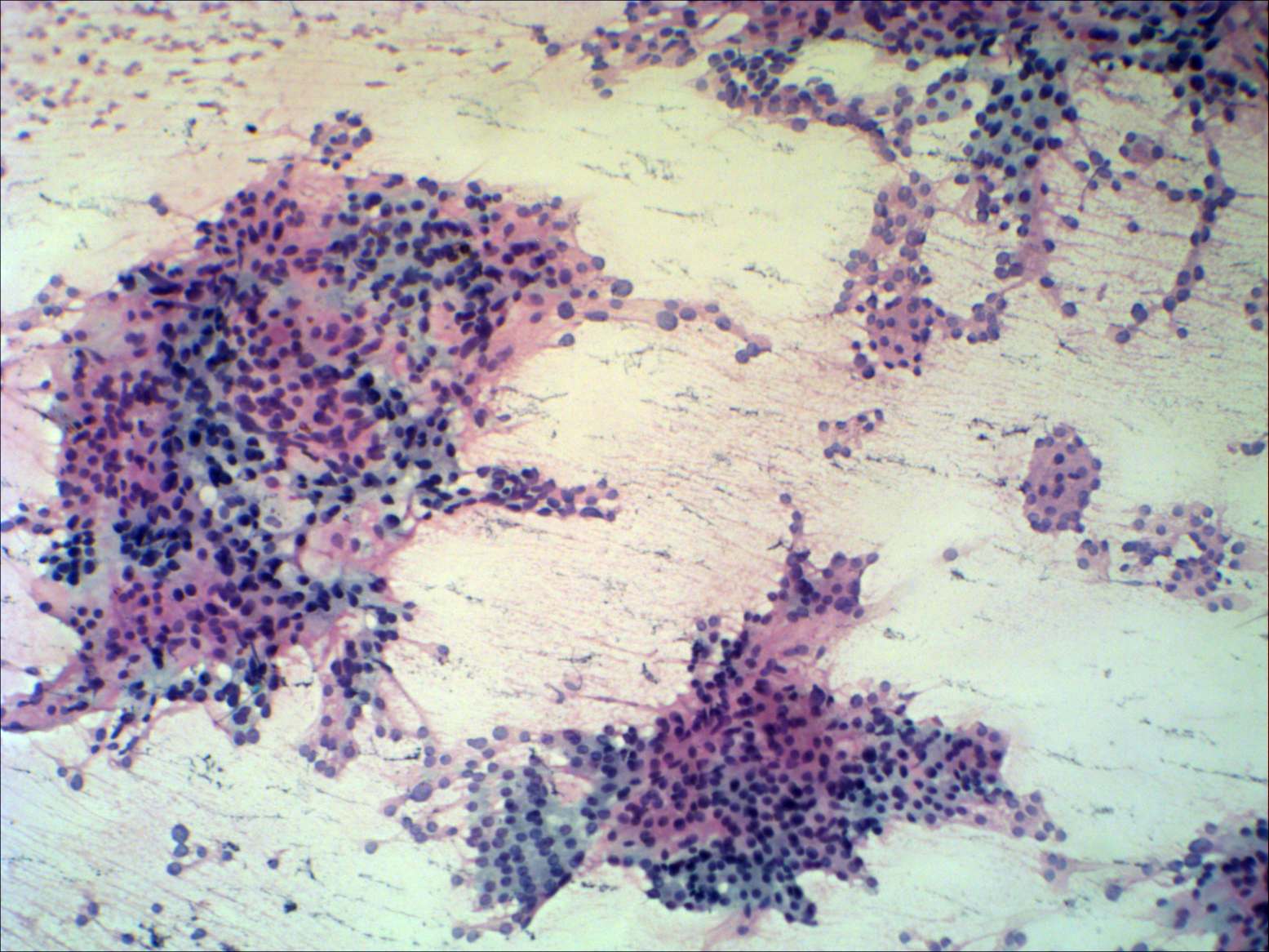 Pap-smear, 100x. The cytological picture corresponds to a mixed micro-, normofollicular growth pattern.