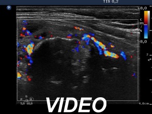 Clinical data: A 55-year-old woman was treated for hyperthyroidism for 6 years. She was known harboring a multinodular goiter. She wished to avoid to be operated on and requested for ethanol sclerotherapy.