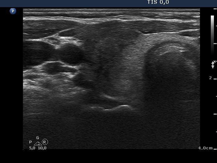 Ultrasonography: The thyroid was intact.