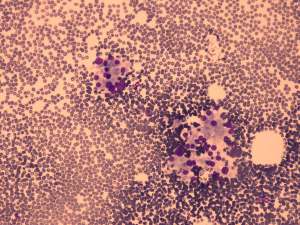 Aspiration cytology from the nodule resulted in benign lesion corresponding to hyperthyroidism.
