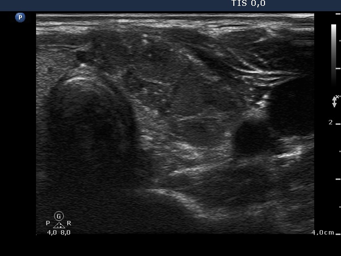 Based on the ultrasound and cytological pattern combined, the probability of cancer was greater than the average.