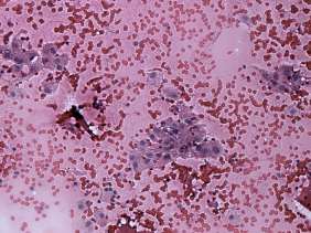 Although the possibility of an autoimmune thyroiditis could not be excluded on the ultrasound presentation, the normal anti-TPO level and the lack of lymphocytes on the smear stood against Hashimoto's thyroiditis.