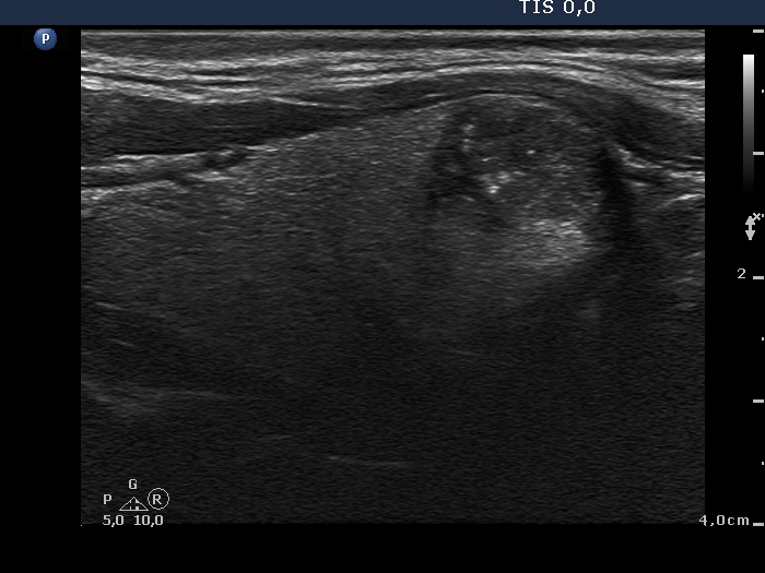 Clinical presentation: A 26-year-old woman requested an evaluation of a nodule discovered by herself six weeks earlier.