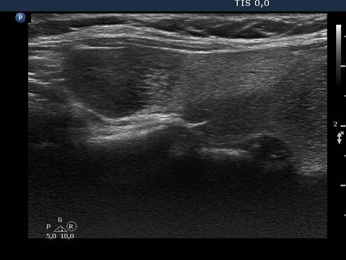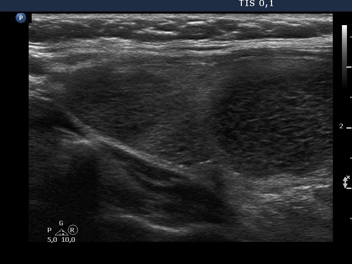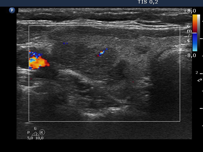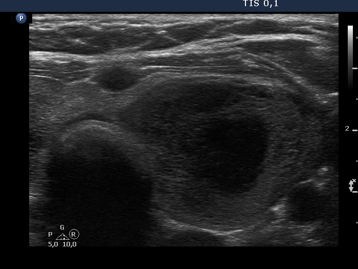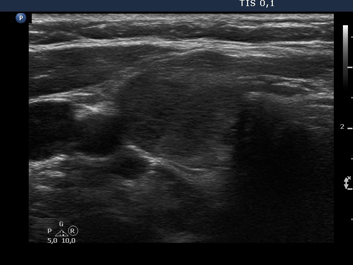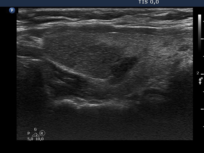 Clinical presentation: A 48-year-old woman requested a thyroid evaluation. She was diagnosed with a low grade, stage III/A non Hodgkin lymphoma two years ago. On the first and subsequent PET CT scan, no progression was detected, and on all occasions multiple foci were described within the thyroid. The patient hasn't got any therapy yet.