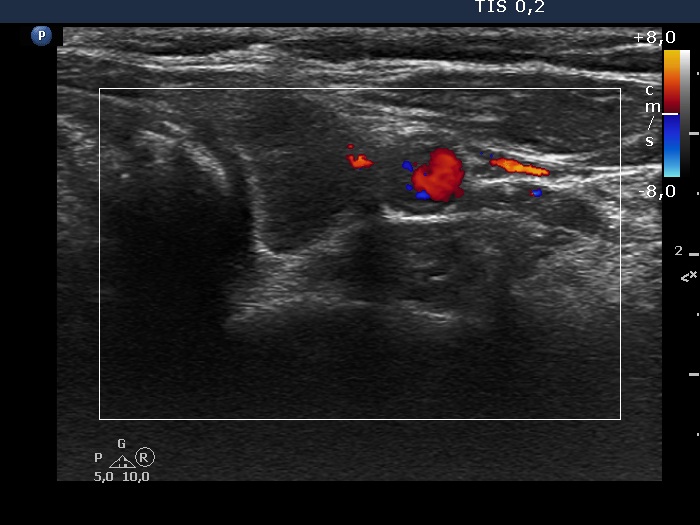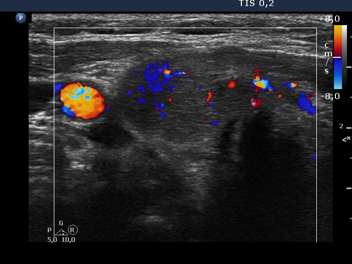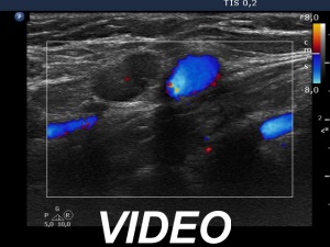 Clinical presentation: The patient requested a repeat examination because she has had already neck discomfort and occasionally difficulties in swallowing. She first noticed these complaints 3 months ago. She was under regular oncology check-up and was last checked for 2 months. At the time, it was still not considered warranted to treat lymphoma.