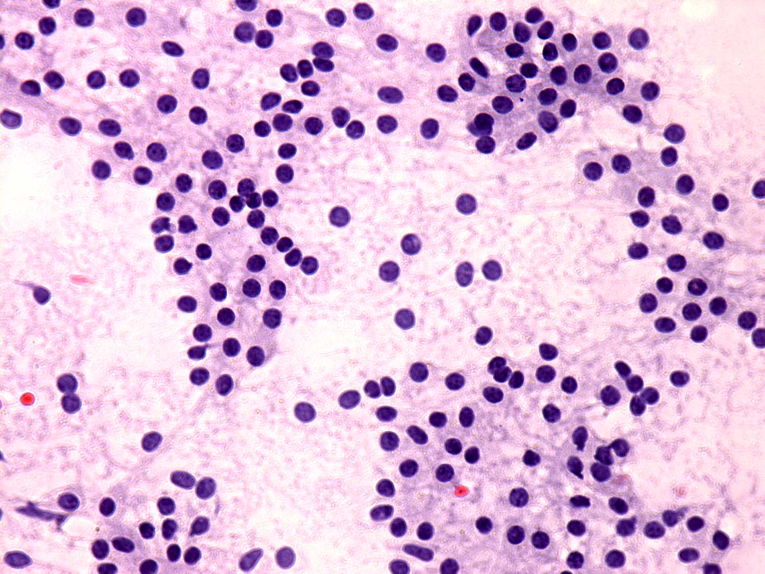 Graves' hyperthyroidism. - Figure 2. Cytological features - cellular arrangement.